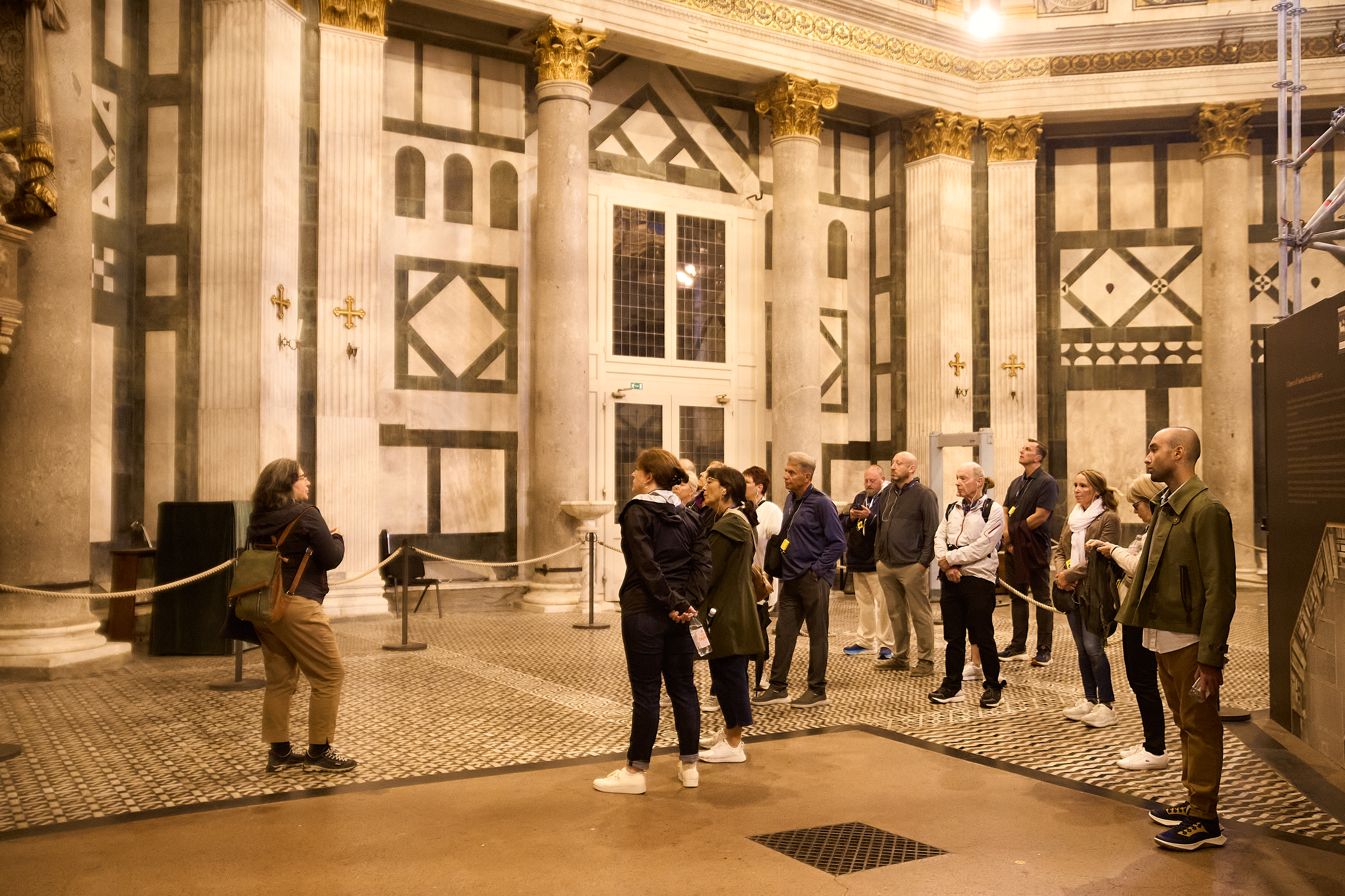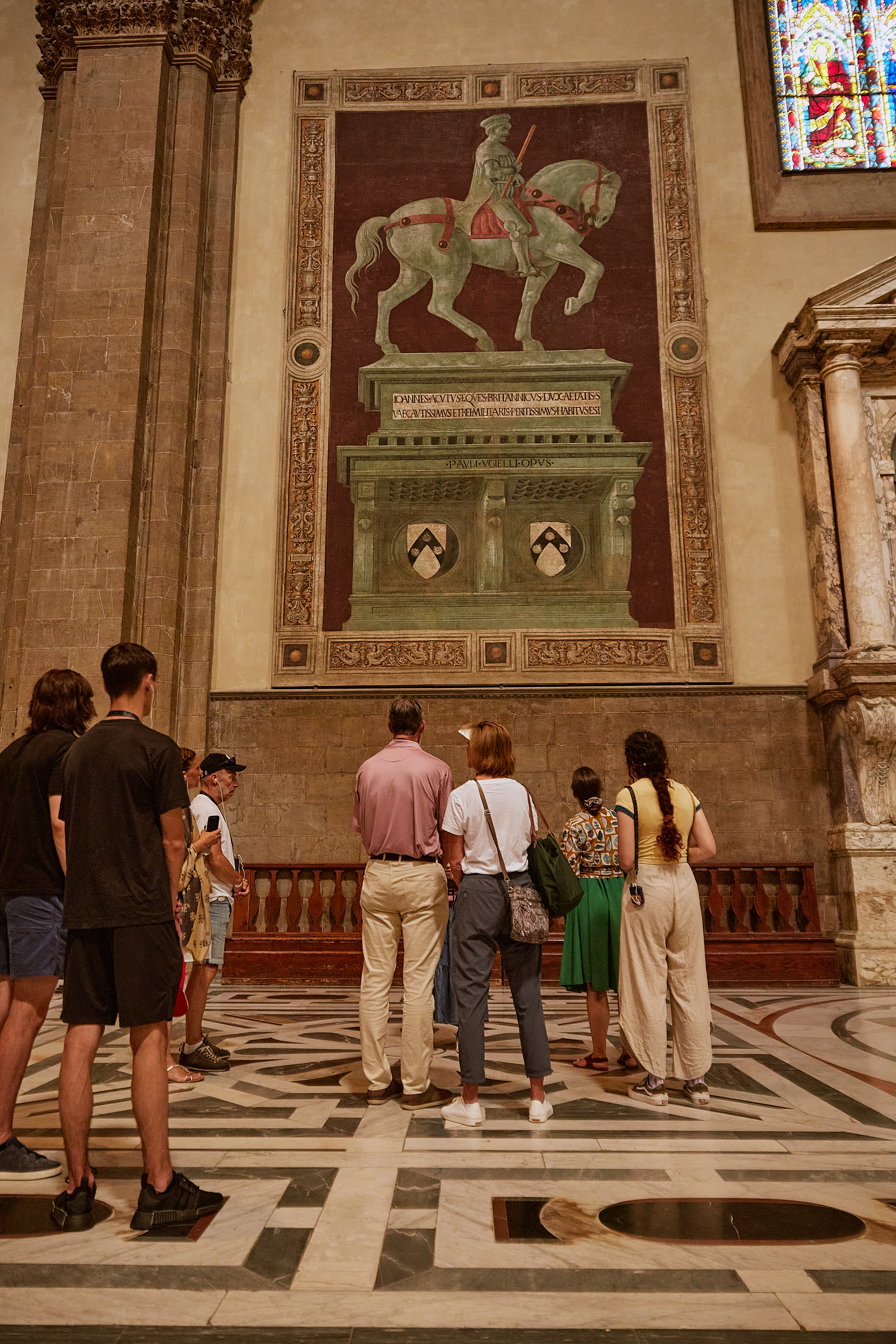 Begin your experience inside the majestic Duomo, where art and devotion intertwine. With your expert guide, explore the Cathedral’s impressive Gothic structure, admire its brilliant stained-glass windows, and gaze at Giorgio Vasari’s grand fresco of the Last Judgment beneath the dome. Learn about the Medici dynasty, the artists who shaped Florence’s skyline, and the incredible craftsmanship that made this church a symbol of human creativity.