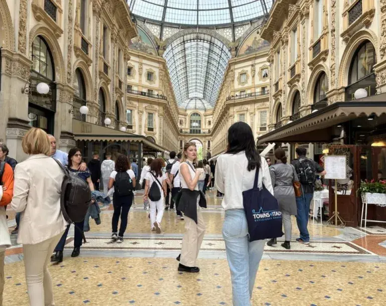 Meet our guide in Piazza Duomo, in front of Tiffany &Co under the loggias.